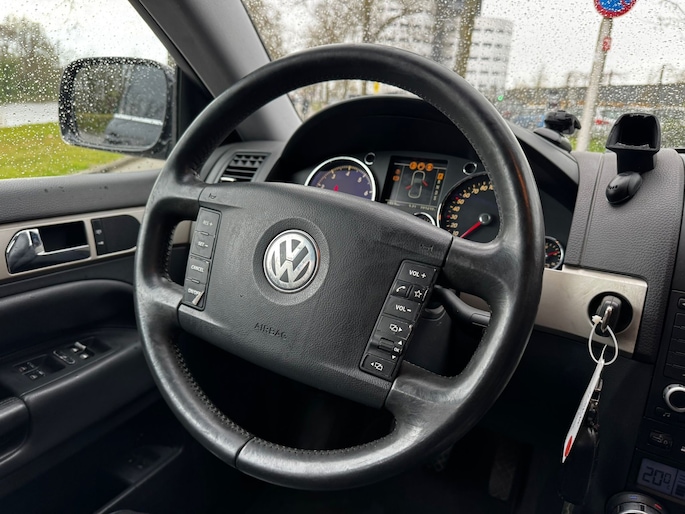 Volkswagen is synoniem met innovatieve technologie en hoogwaardige kwaliteit. U ontdekt het zelf wanneer u kennismaakt met deze Volkswagen Touareg. Een belangrijke eigenschap van iedere Volkswagen is zijn duurzaamheid. Dat ziet u ook aan deze Touareg. Een krachtige motor geeft deze auto zijn sportieve prestaties. Een praktische extra is de elektrisch bedienbare achterklep die opent en sluit met een druk op de knop. Bij de rijke uitrusting horen ook 17 inch lichtmetalen velgen, warmtewerend glas, in hoogte verstelbare voorstoelen en in delen neerklapbare achterbank.