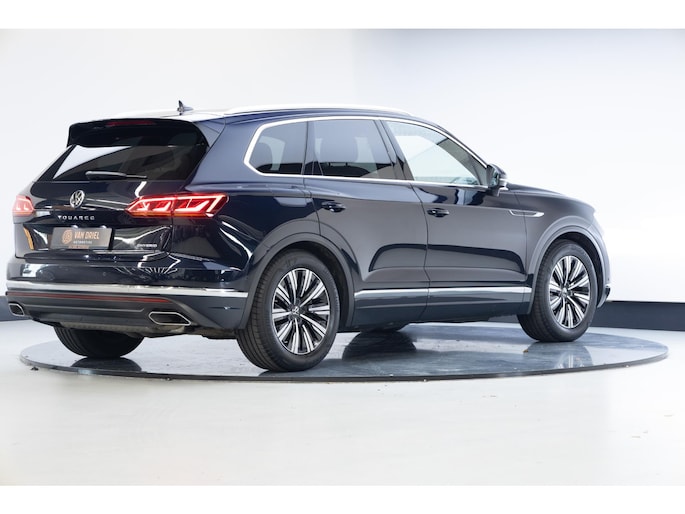 De Volkswagen Touareg, met zijn stijlvolle uitstraling en comfortabele interieur, kenmerkt het handelsmerk van Duitse topkwaliteit. Een belangrijke eigenschap van iedere Volkswagen is zijn duurzaamheid. Dat zie je ook aan deze Touareg. Op een dag rijden we allemaal elektrisch. Maar voor nu is de hybride oplossing van elektrisch en benzine ideaal! Zo ook bij deze Volkswagen Touareg. Altijd al een voorkeur voor een lederen interieur gehad? Deze Volkswagen Touareg heeft het! De verwarmbare voorstoelen zijn een heerlijke extra optie, waarmee je jezelf en je bijrijder een groot plezier doet. De comfortstoelen zorgen voor een optimale zithouding onderweg. Laat de zon maar schijnen door het elektrisch bediende glazen panoramadak. De elektrische achterklep opent met een druk op de knop, zodat jij gemakkelijk toegang heeft tot de bagageruimte. Afzien is er bij deze Volkswagen Touareg niet bij. Zelfs achterin vinden we de verwarmde achterbank. In deze auto profiteer jij onder andere ook van: 19 inch lichtmetalen velgen, LED koplampen, donker getint glas achter, in delen neerklapbare achterbank, LED-achterlichten en verstelbare lendensteunen.