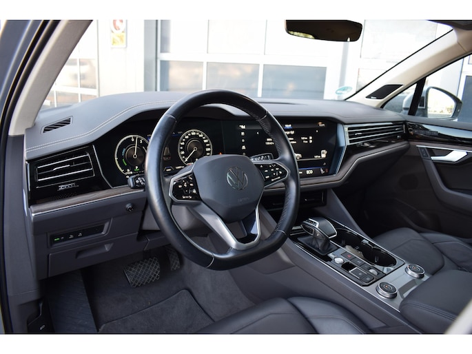 Natuurlijk, een Volkswagen is ontwikkeld om efficiënt, veilig en moeiteloos te rijden. Maar deze Touareg is bovendien voorzien van tal van extra's die het leven nog aangenamer maken. Niet voor niets is de vraag naar gebruikte Volkswagens zo groot, want de kwaliteit staat ook na een aantal jaren nog buiten kijf, zoals aan deze Touareg duidelijk te zien is. Het beste van twee werelden komt samen in de hybride motor. Daarmee wordt deze Volkswagen Touareg aangedreven door zowel brandstof als door de elektrische accu, die al rijdend of remmend wordt bijgeladen. Het lederen interieur springt meteen in het oog; maar wat dacht u van het ultragemakkelijke elektrisch bediende glazen panorama dak en de elektrisch bedienbare achterklep? Zit u goed? De stoelen zijn eenvoudig instelbaar dankzij de elektrische bediening met geheugen. De luchtvering en de comfortstoelen Laat ze achterin ook maar genieten: deze Volkswagen Touareg is uitgevoerd met een verwarmde achterbank. Natuurlijk behoren 19 inch lichtmetalen velgen, LED koplampen, adaptief dempingsysteem, geluidsisolerende ramen, in delen neerklapbare achterbank en LED-achterlichten ook tot de uitrusting van deze complete auto.