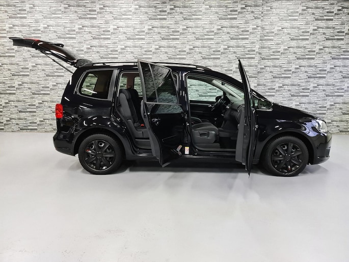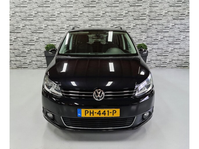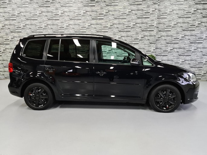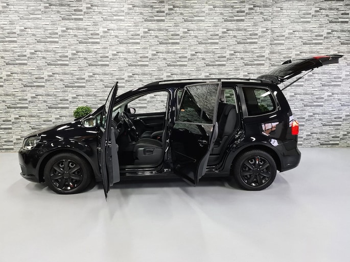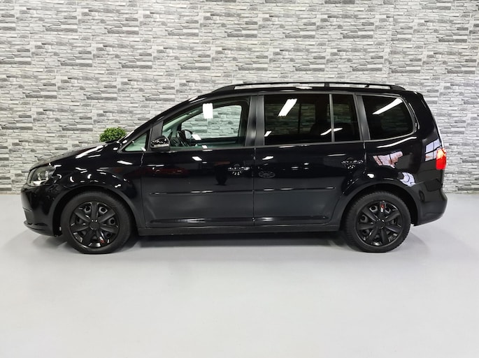 Hier staat een mooie zwarte Volkswagen Touran met de relatief zuinige 1.2 TSI motor die gecombineerd met de soepel schakelende 6-bak heerlijk rijd!