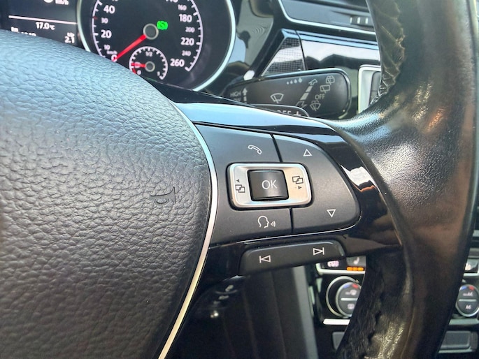 Achteruitrijden en inparkeren worden een eitje dankzij de achteruitrijcamera. Met adaptive cruise control houdt deze auto automatisch afstand tot uw voorligger. Spraaksturing luistert naar uw stem en bedient de belangrijkste voertuigfuncties. De snelste of zuinigste weg? Het full map navigatiesysteem aan boord wijst de juiste weg! Aan boord van deze Volkswagen Touran is een achteropkomend verkeer waarschuwing voor extra veiligheid. De uitrusting van deze auto is met automatische airconditioning, DAB ontvangst, regensensor, keyless entry, automatisch dimmende binnenspiegel en lederen stuur behoorlijk compleet.