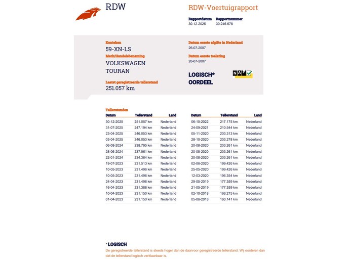 Kilometerstand gecontroleerd