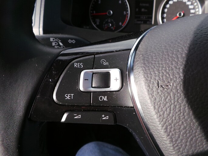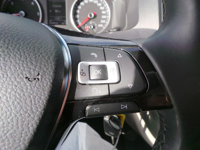 Een belangrijke veiligheidsvoorziening is de bediening van het audiosysteem via knoppen op het stuur. Het hele jaar door zorgt airconditioning voor een prettige temperatuur. Het hoort bij een intelligente auto als deze dat hij zelf in staat is om zijn omgeving in de gaten te houden. Dat doet deze Volkswagen niet alleen met een automatisch inschakelbare verlichting en een regensensor, maar hij beschikt ook over parkeersensoren achter, die u helpen om gemakkelijk in te parkeren. Met de cruise control komt u bijna nog fitter aan dan u vertrekt. Wat u ook in deze auto kunt vinden zijn multifunctioneel lederen stuur, automatisch dimmende binnenspiegel, boordcomputer en centrale deurvergrendeling met afstandsbediening.
