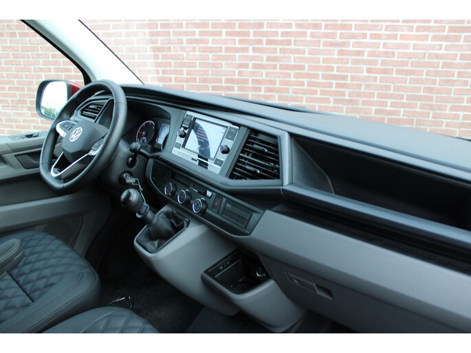 Een nieuwe Volkswagen Transporter met originele 150PK motor handgeschakeld, cruise control, achteruitrijcamera en multifunctioneel stuurwiel.