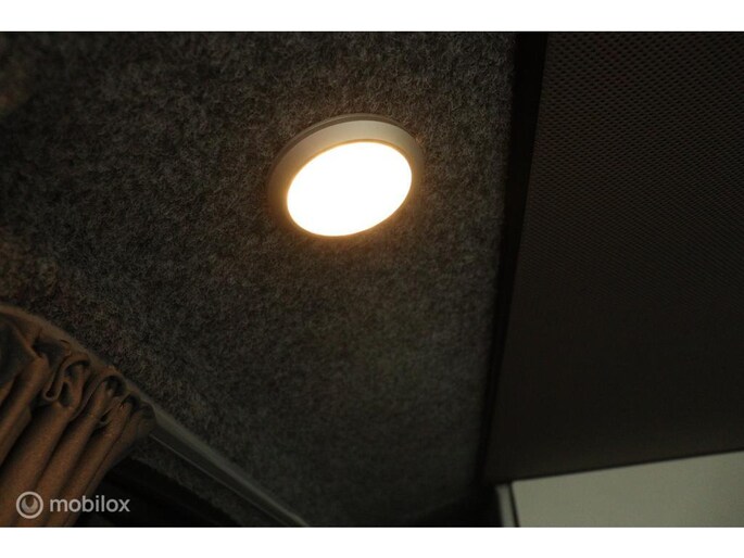 De buscamper is binnen voorzien van led lampjes.
