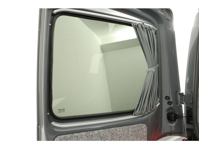 De buscamper is voorzien van een slaap-hefdak met een bedmaat van 120 x 200 cm en heeft rondom glastinting.