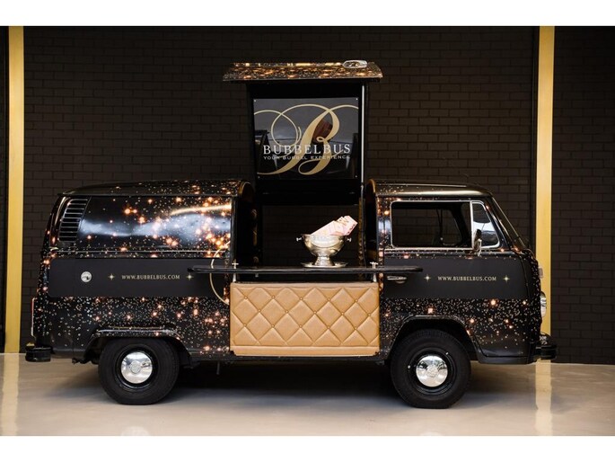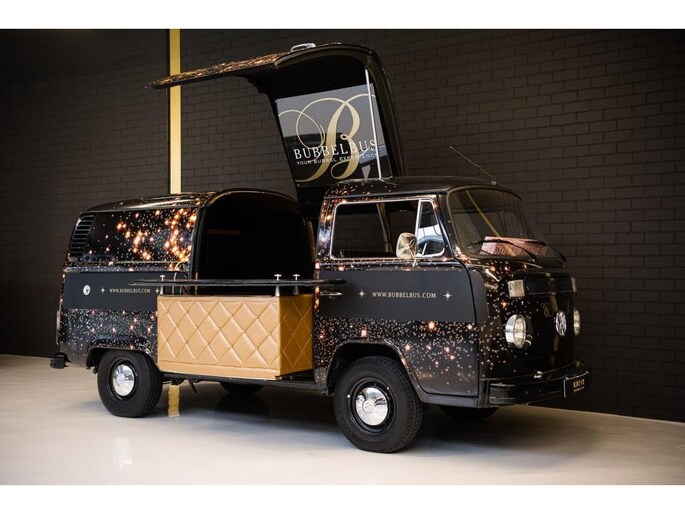 Offered by Kaeve Cars: the Bubbelbus, a beautifully restored 1976 Volkswagen T2 Transporter, converted into an exclusive mobile champagne bar. A true lifestyle object where timeless design, craftsmanship and refined hospitality come together.