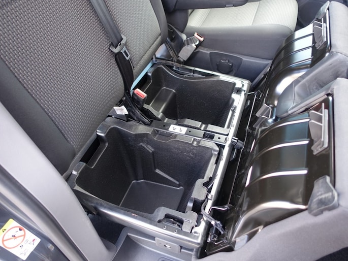 - Stoelen eerste zitrij: Dubbele passagiersstoel met Opbergvak (afsluitbaar) in Stoelbox en Opbergvak (neerklapbaar) Rugle