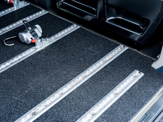 - Het B-segment van de laadruimte voorzien van een M1-gekeurde aluminium vloer voorzien van rails volgens specificatie. Het resterende deel van de laadruimte voorzien van hout.