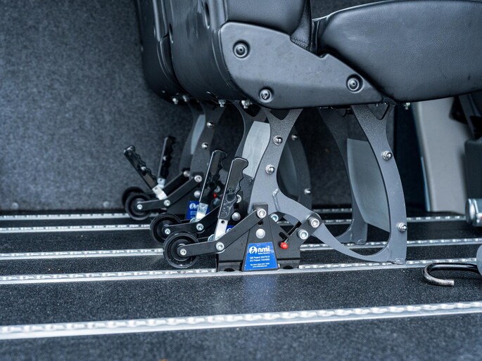 - De volledige vloer afwerken met taraflex. Op de aluminium vloer kunnen M1-gekeurdestoelen en/of ISO 10542 gekeurde rolstoel-vergrendelingen worden toegepast.