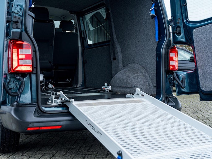2.0 TDI L1H1 Comfortline Rolstoelvervoer | Rolstoelvervoer | Oprijplateau Autolift R226 | 2x Rolstoel vergrendeling | 2 M1 Gekeurde Stoelen SmartSeat | Aluminium Vloer M1 Gekeurd | Geïsoleerd | Airco | Cruise Control | Parkeersensoren |