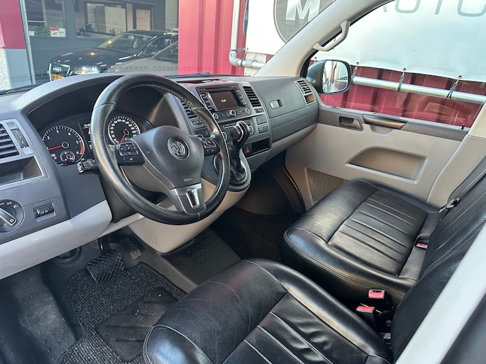 Bij het ontwerpen van de Volkswagen Transporter stonden uw comfort en uw veiligheid centraal. Een belangrijke eigenschap van iedere Volkswagen is zijn duurzaamheid. Dat ziet u ook aan deze Transporter. De aandrijving van deze Volkswagen wordt verzorgd door een viercilinder motor en een automatische transmissie. Het met leer beklede interieur is comfortabel en stijlvol. De lekker grote deuropening van de schuifdeur aan passagierszijde zorgt voor een heerlijk ruime instap.