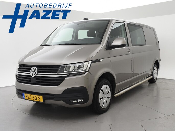 Dubbel cabine Transporter T6.1 het laatste model van de échte Volkswagen Transporter, Verlengde uitvoering L2H1 dubbel cabine met 6 zitplaatsen, 2.0 TDI 150 PK met 6 versnellingen, Mojave beige metallic exterieurkleur, Comfort bestuurdersstoel met 2 armleuningen, Apple Carplay / Android Auto appstreaming Navigatie, Google Maps, Flitsmeister, Spotify Whatsapp etc, Trekhaak met 2500 kg trekgewicht op kenteken, Cruise control, Airco, RVS sidebars, Mistlampen, Parkeersensoren, 2 achterdeuren met ruiten en ruitenwissers, Bluetooth met audiostreaming, Bumpers en buitenspiegels in carrosseriekleur.