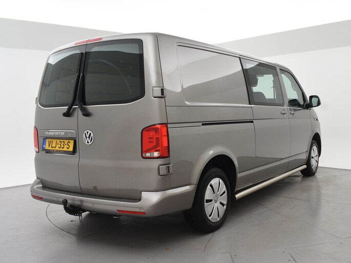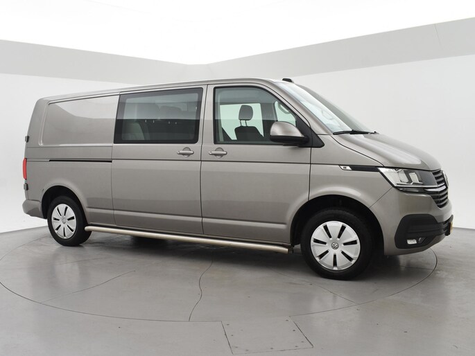 Dubbel cabine Transporter T6.1 het laatste model van de échte Volkswagen Transporter, Verlengde uitvoering L2H1 dubbel cabine met 6 zitplaatsen, 2.0 TDI 150 PK met 6 versnellingen, Mojave beige metallic exterieurkleur, Comfort bestuurdersstoel met 2 armleuningen, Apple Carplay / Android Auto appstreaming Navigatie, Google Maps, Flitsmeister, Spotify Whatsapp etc, Trekhaak met 2500 kg trekgewicht op kenteken, Cruise control, Airco, RVS sidebars, Mistlampen, Parkeersensoren, 2 achterdeuren met ruiten en ruitenwissers, Bluetooth met audiostreaming, Bumpers en buitenspiegels in carrosseriekleur.