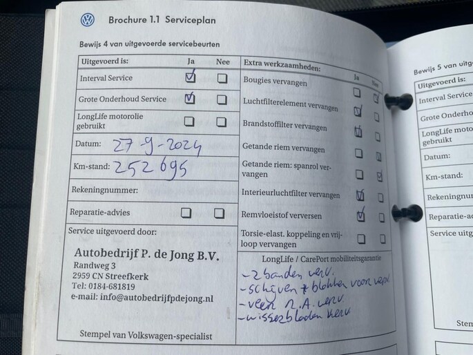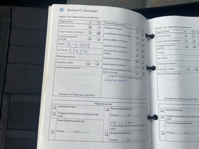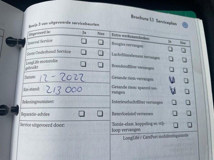 Onderhoudsboekje aanwezig