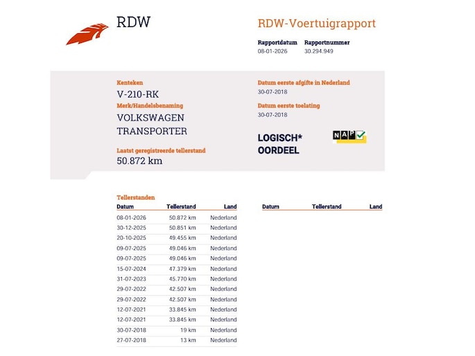 Kilometerstand gecontroleerd