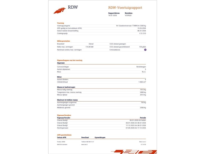 | Carrosserie | Bedrijfswagen (5 deuren) |