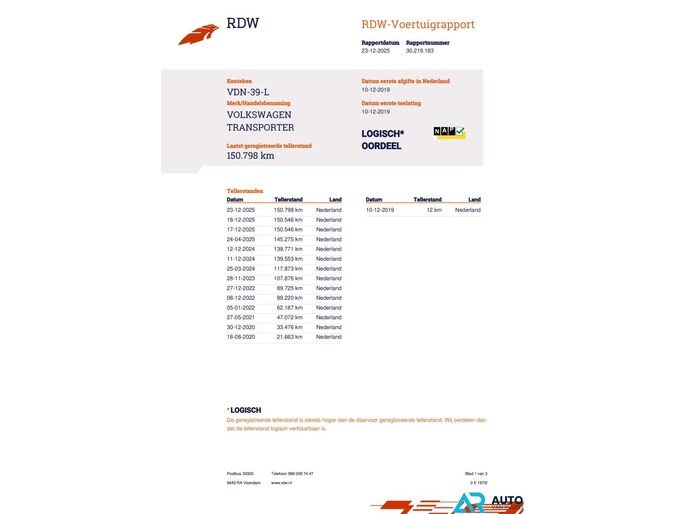 Kilometerstand gecontroleerd