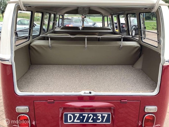 waarschijnlijk een van de mooiste en beste T1 te koop originele 9 pers de luxe uitvoering een in Duitsland gemaakte bus daarna naar California verscheept en door ons weer geïmporteerd is echt als nw van onder tot boven onderkant is ook gespoten in kleur super mooi !! bijna alle ramen kunnen open voor safari ramen te veel vernieuwd om op te noemen california import originele bumpers enz ook aanwezig rijd echt super voor info bellen 058 2541491