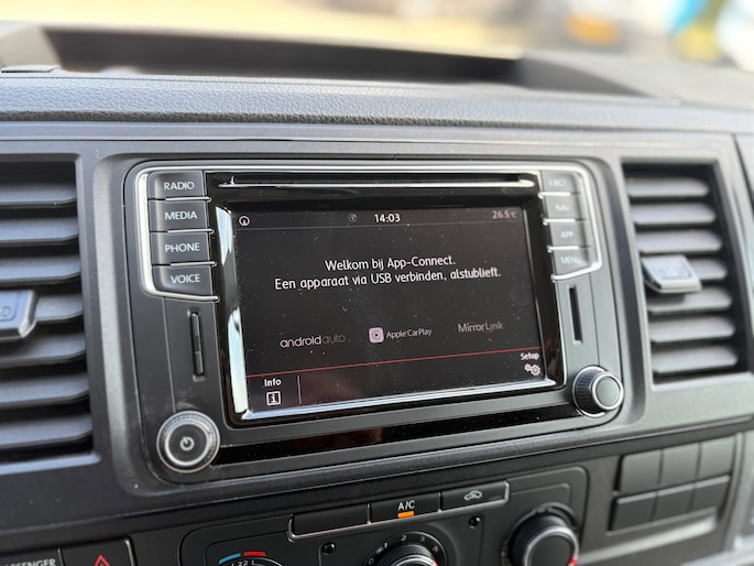 Volkswagen Transporter 2.0 TDI L1H2 Highline, afkomstig van de eerste eigenaar en altijd goed onderhouden. Luxe uitgevoerd met onder andere: AUTOMAAT, airconditioning, cruise control, apple carplay, voorruitverwarming, lichtmetalen velgen, parkeersensoren achter, navigatie, EURO6, NAP.