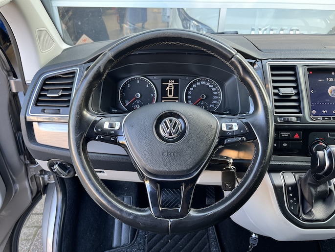 Een zeer nette Volkswagen T6 2.0 TDI 150pk DSG Automaat met Airco Cruise controle Trekhaak 2500kg trekgewicht 2-Persoons Telefoonverbinding Apple carplay Sitebars Euro 6