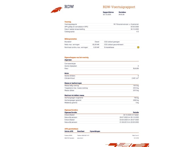 Kilometerstand gecontroleerd