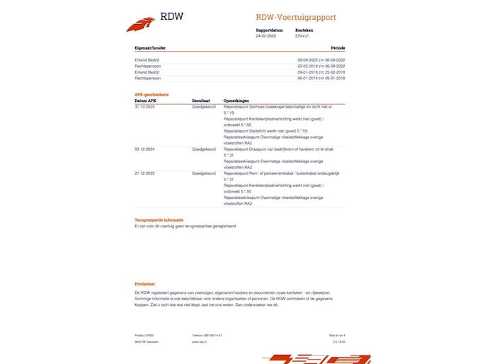 Kilometerstand gecontroleerd
