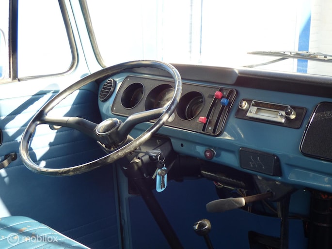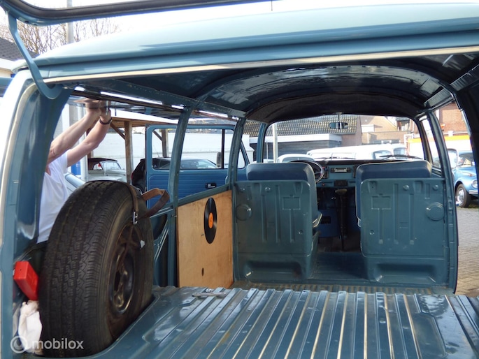 De transporter is in het verleden gerestaureerd, en dat is prima gedaan. De carrosserie is nog immer in zeer goede staat, en behoudens wat kleine sporen van gebruik een zeer representatief vervoermiddel. De onderzijde is perfect!