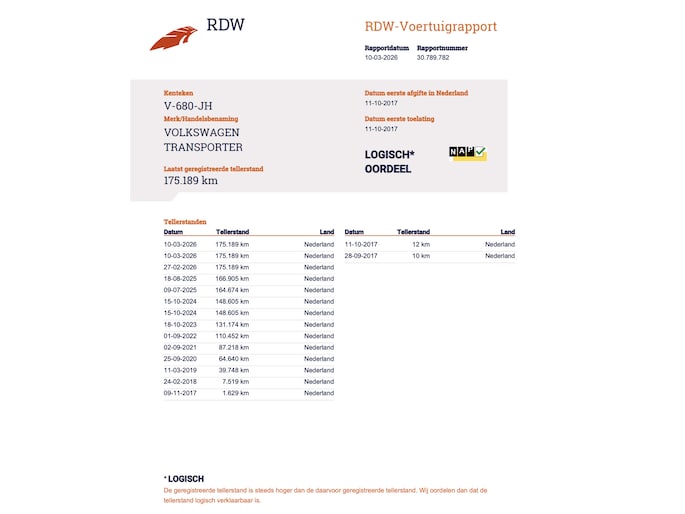 Kilometerstand gecontroleerd