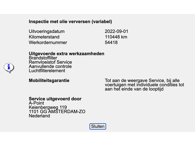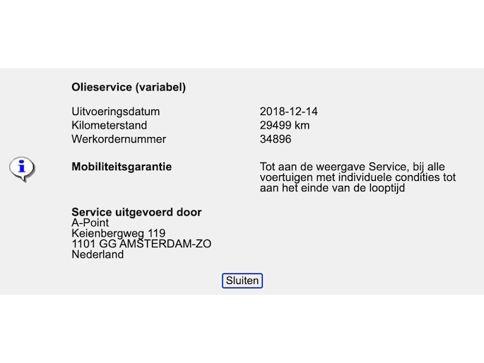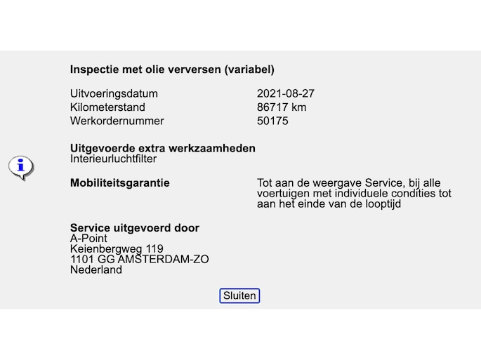 Onderhoudshistorie: