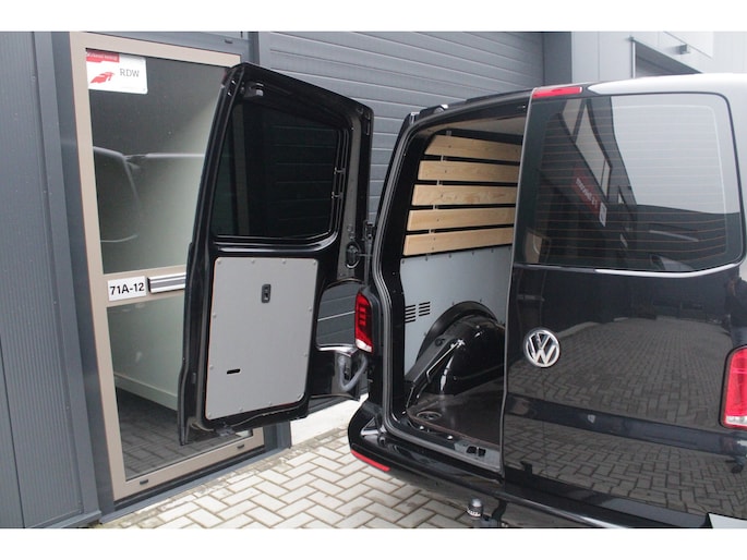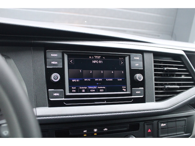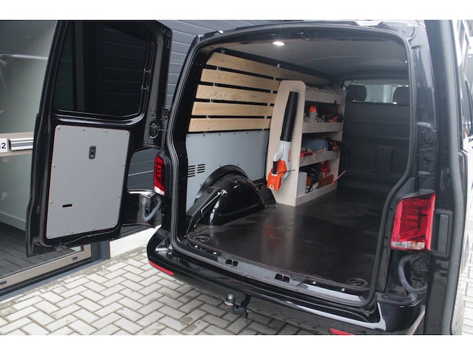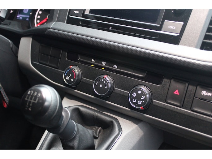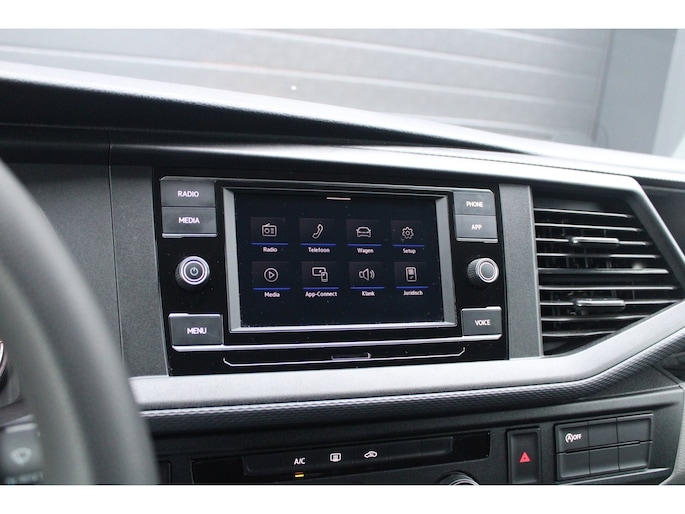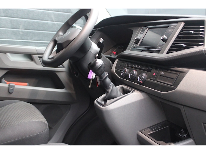 Binnenin tref je een verzorgd en functioneel interieur waar comfort en gebruiksgemak centraal staan. De airconditioning zorgt voor een aangename temperatuur onder alle omstandigheden, terwijl cruise control het rijden op de snelweg een stuk ontspannener maakt. Dankzij Apple CarPlay en Android Auto blijf je altijd verbonden en navigeer je moeiteloos naar je bestemming. Parkeersensoren achter helpen bij het inparkeren en manoeuvreren in krappe ruimtes, en met de trekhaak breid je de inzetbaarheid van deze Transporter nog verder uit.