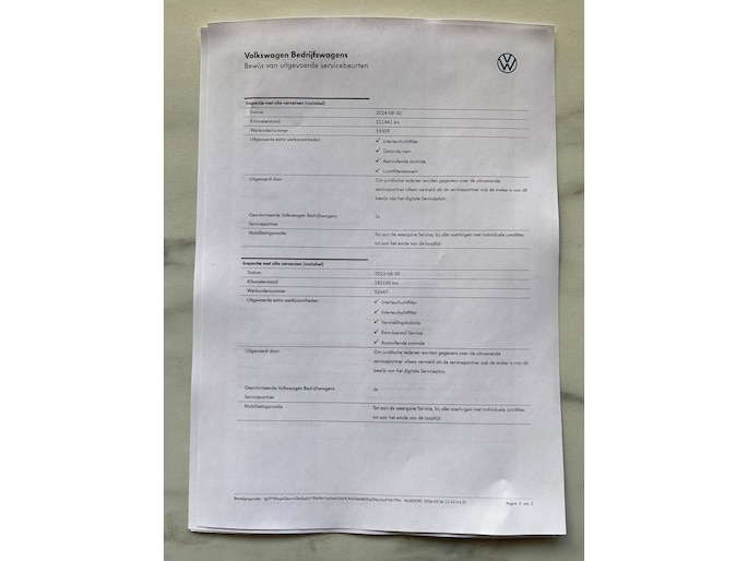 • Onderhoudsbeurt volgens fabrieksvoorschrift inclusief