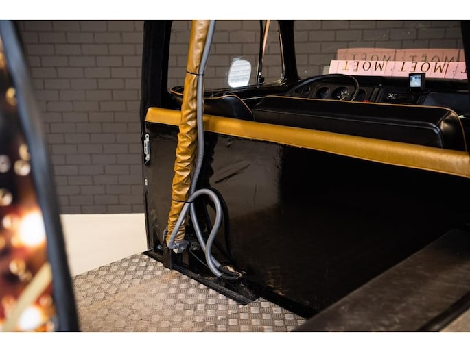 The interior has been designed with a minimalist and elegant approach, perfectly suited to premium champagne service. The Bubbelbus is equipped with two wine/champagne refrigerators, ensuring bottles are always served at the correct temperature. There is one serving point, allowing for controlled and refined presentation. A striking feature is the hydraulically operated service door, which opens via remote control and creates an impressive reveal at any event.