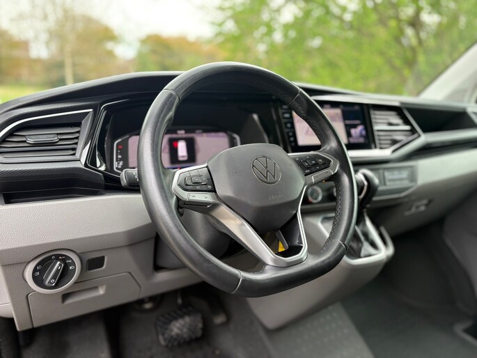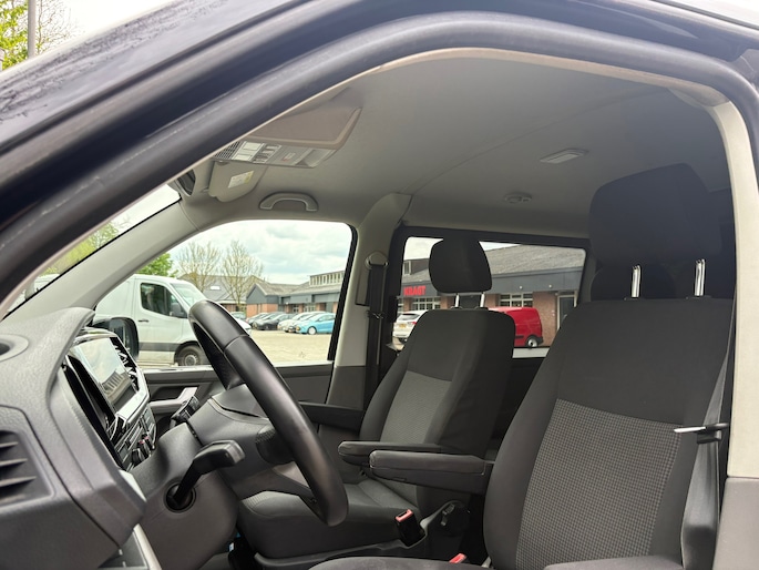 Volkswagen Transporter 2.0 TDI L2H1 28 Bulli, afkomstig van de eerste eigenaar en altijd dealeronderhouden geweest. Luxe uitgevoerd met onder andere: Dubbel cabine, automaat, cruise control, digitale dashboard, airconditioning, achteruitrijcamera, apple carplay, dubbele schuifdeuren, parkeersensoren voor- en achter, trekhaak met 2500KG trekgewicht, EURO6.