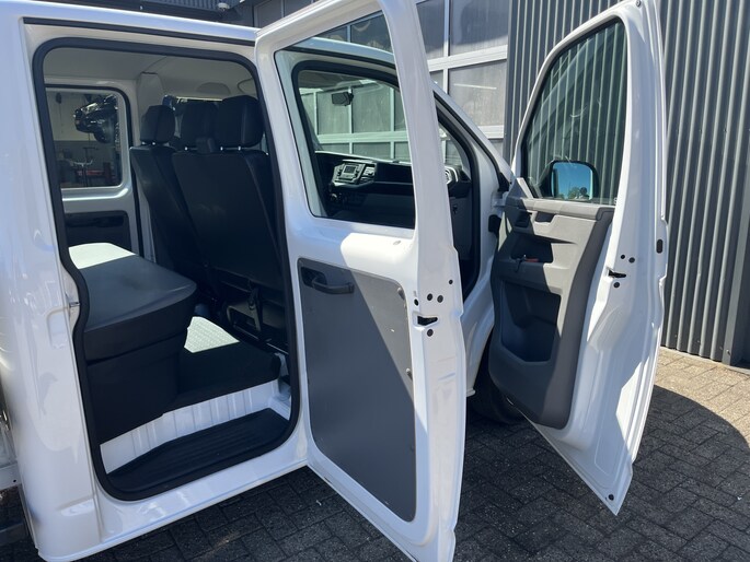 Een zeer nette Volkswagen Transporter 2.0 TDI 90pk Euro 6 Pick up Dubbele cabine open laadbak Pick-up met Airco Telefoonverbinding 1e eigenaar 6-Persoons Werkverlichting P-up Doka Pritsche