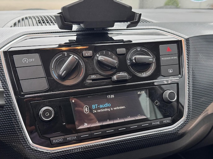 Zoals u mag verwachten van deze Volkswagen Up! is hij uitgerust met een reeks aan actieve veiligheidssystemen. De Brake Assist vergroot de veiligheid door bij een noodsituatie extra power te leveren op het remsysteem. De auto is ook uitgerust met hill hold functie en bandenspanningcontrolesysteem.