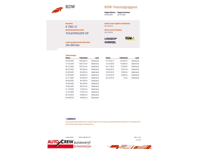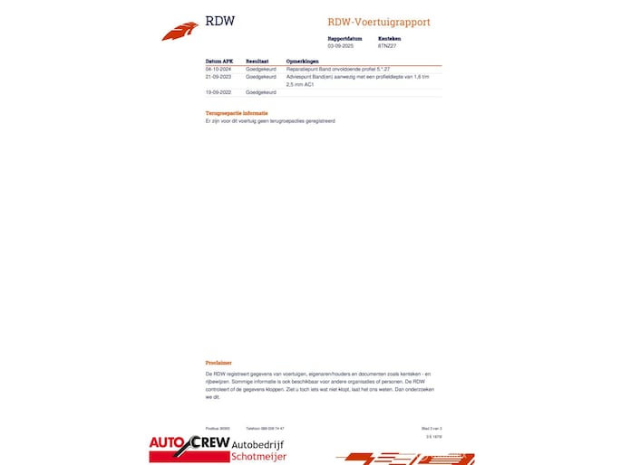 auto wordt voorzien van nieuwe APK bij aflevering.