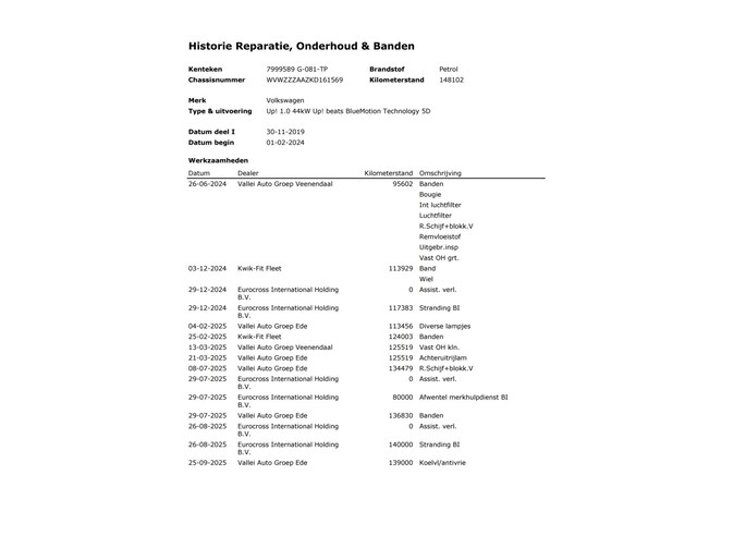 Onderhoudshistorie aanwezig: Ja