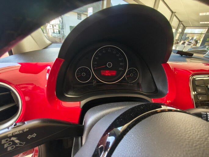 Een compacte stadsauto met stijl en comfort: deze Volkswagen Up! 1.0 High Up! is het perfecte voertuig voor wie praktisch rijden wil combineren met luxe opties. Uitgevoerd in een levendige rode signaalkleur trekt hij direct de aandacht. Met het elektrisch glazen panoramadak geniet je van extra licht en ruimte, ideaal voor zomerse ritten. Deze hatchback biedt plaats aan vier personen en is voorzien van vele comfortabele functies zoals airconditioning, snelheidsafhankelijke stuurbekrachtiging en een navigatiesysteem dat gemakkelijk uitneembaar is.
