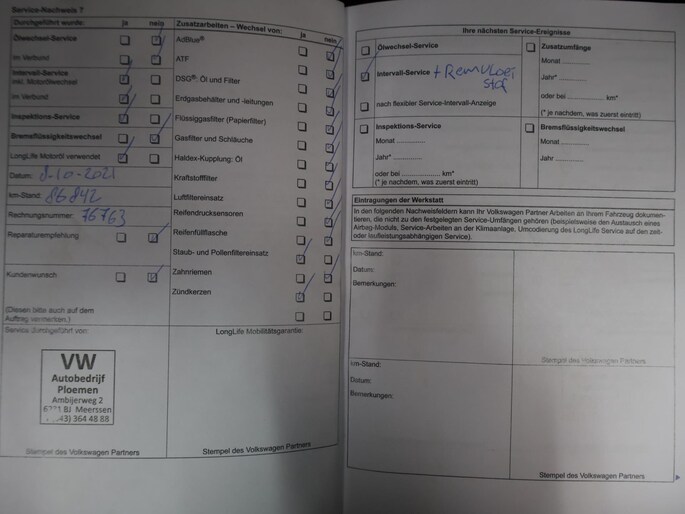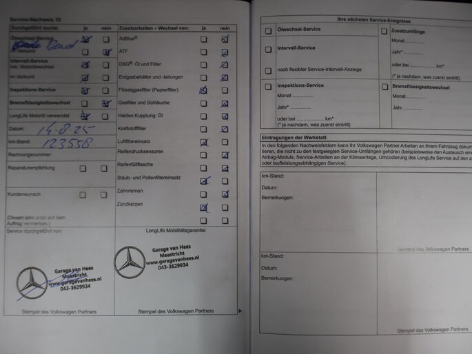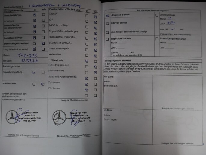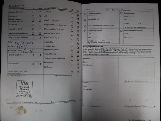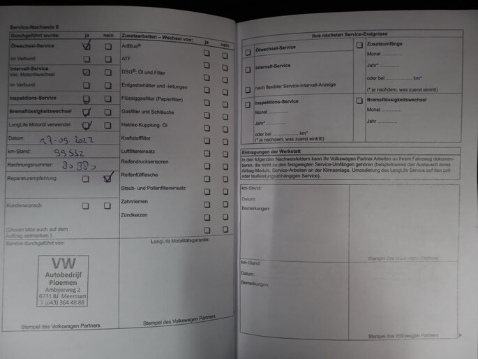 Onderhoudsboekjes: Aanwezig