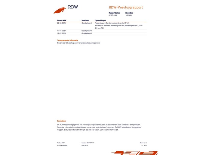 - APK minimaal 11 maanden geldig