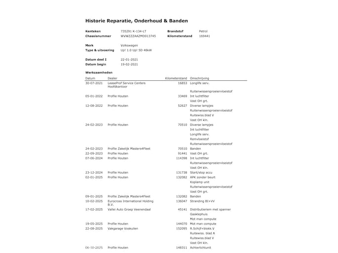 Onderhoudshistorie aanwezig: Ja