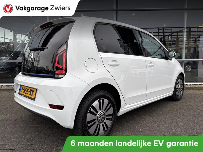 Volkswagen heeft de auto opnieuw uitgevonden. De volledig elektrische Volkswagen e-Up! is duurzaam, maar biedt tegelijk veel rijcomfort en geweldige prestaties. Nooit meer naar de pomp! De elektromotor opladen en rijden maar! Het zijn de degelijkheid van de constructie en de doordachtheid van het ontwerp die ervoor zorgen dat een Volkswagen jarenlang begeerlijk blijft. Zoals deze e-Up!, bijvoorbeeld. In de winter wordt het echt genieten met de stoelverwarming. In deze Volkswagen profiteert u onder andere ook van: 15 inch lichtmetalen velgen, warmtewerend glas, LED-dagrijverlichting en in delen neerklapbare achterbank.