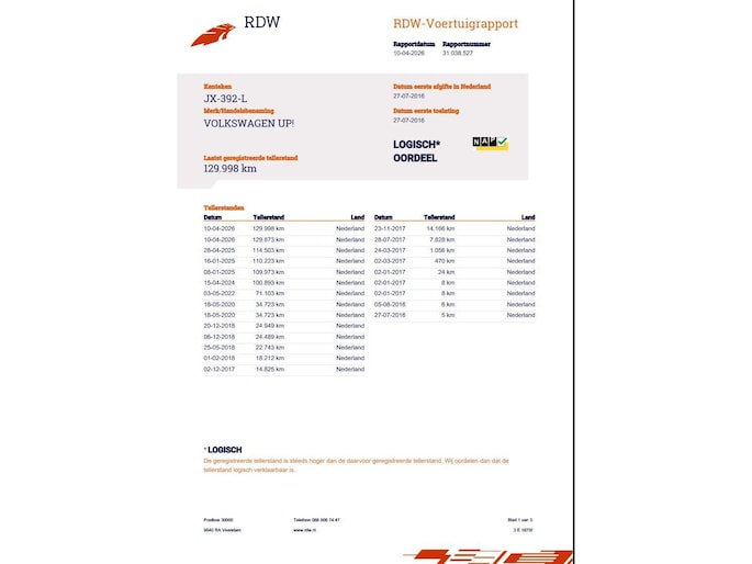 Dit afleverpakket bevat: GARANTIE (1 maand garantie, 5.000 km garantie); Geldige APK, RDW-leges, Wettelijke garantie