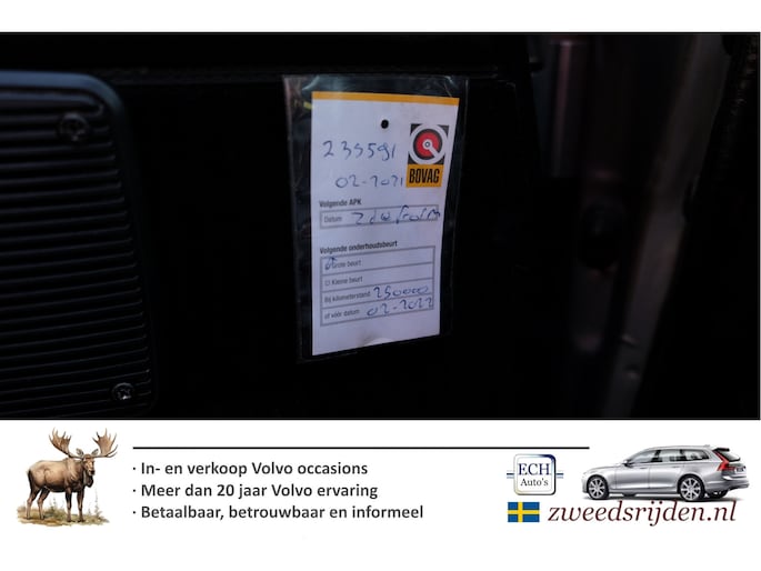 Optioneel afleverpakket (€ 695): Zweedsrijden afleverbeurt: Bij Zweedsrijden afleverbeurt krijg je: * Grote beurt * Nieuwe APK keuring * Volledige technische controle + verhelpen eventuele gebreken. * Slijtagedelen kunnen tot de volgende beurt mee * 3 maand garantie draaiende delen motor + bak * Verhelpen eventuele elektrische storingen Met meer dan 20 jaar Volvo expertise weten we waar de zwakke plekken zitten en hoe deze te verhelpen zijn.