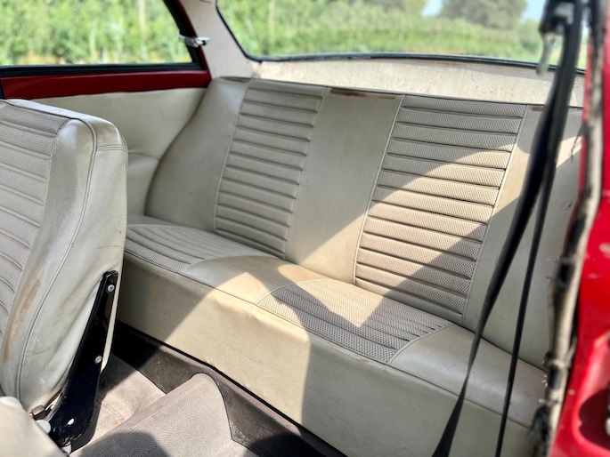 De auto is in het verleden gespoten in een twotone kleurstelling waarbij het dak is voorzien van een wit/creme kleurige lak. De auto staat rondom netjes in de lak, alle chroomdelen zijn aanwezig en in prima staat. Alle deuren en panelen zijn voorzien van de gewenste rubbers en sluiten prima af. De auto staat op een setje velgen wat gespoten is in de kleur van het dak en is voorzien van een nette set banden. Deze Amazon is tevens voorzien van een trekhaak, een sportieve Simons uitlaat en 2 verstralers welke zijn weggewerkt achter de grill van de auto.