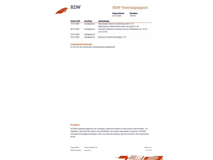 - APK minimaal 11 maanden geldig
