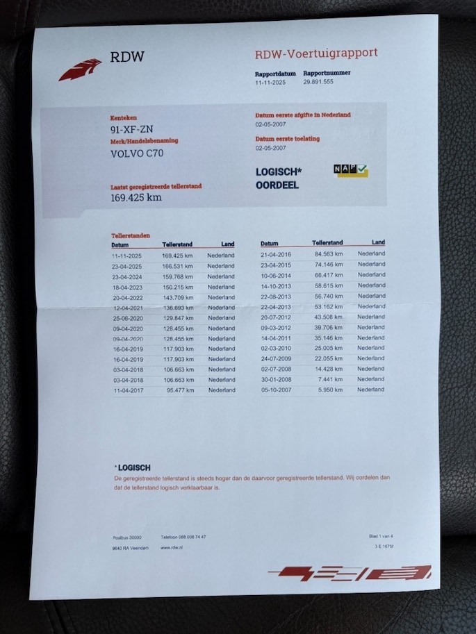 Kilometerstand gecontroleerd