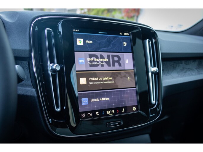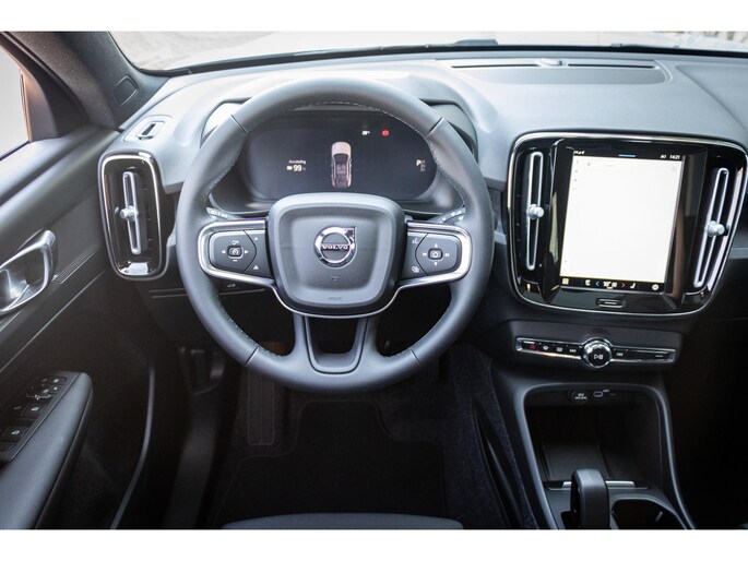 Deze Volvo EC40 is innovatie op zijn best. Hij is ontworpen als een unieke combinatie van rijplezier en zorg voor het milieu. U zult verrast zijn door de power van de elektromotor. En stil! Het gaat hier om een nieuwe auto, hij is nu direct leverbaar. Lekker hoor, die verwarmbare voorstoelen. Helemaal op koude dagen. Neem plaats achter het stuur en ervaar de weldaad van de comfortstoelen. De elektrische achterklep opent met een druk op de knop, zodat u gemakkelijk toegang heeft tot de bagageruimte. Het glazen panoramadak laat meer licht binnen in het interieur en zorgt voor een magnifiek uitzicht naar buiten. Het verwarmbare stuurwiel is een teken van ultieme luxe. Deze voorziening is een topklasse auto waardig. Tot de uitrusting van deze Volvo behoren ook LED koplampen, elektrisch inklapbare buitenspiegels, extra getint glas, in delen neerklapbare achterbank, actieve hoofdsteunen en verstelbare lendensteunen.