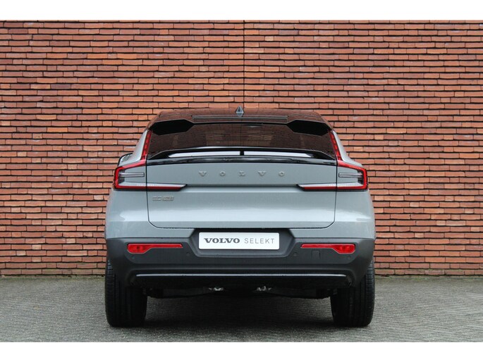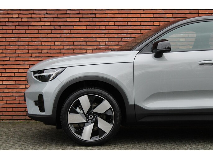 Met deze Volvo EC40 ervaart u alle pluspunten van elektrisch rijden. De elektrische aandrijflijn is stil en soepel en gaat spaarzaam om met energie. De aandrijflijn maakt gebruik van de meest moderne accutechniek, zodat het opladen in zo kort mogelijke tijd gebeurt. Het rijbereik van deze auto is groot genoeg om er de meest voorkomende dagelijkse ritten mee te maken. Doe maar luxe! Neem plaats in de verwarmbare voorstoelen en voel de weldaad in koude dagen. Ontspannen rijden in een optimale zithouding: daarvoor zorgen de comfortstoelen. Een handige voorziening op deze auto is de elektrische achterklep die u op afstand kunt openen. Door het glazen panoramadak heeft u een weidse zichthoek en geniet u van licht en een gevoel van ruimte. Ook in winterse omstandigheden is rijden een plezier, niet in de laatste plaats dankzij het verwarmd stuurwiel. Ook LED koplampen, extra getint glas, in delen neerklapbare achterbank, verstelbare lendensteunen en snelheidsafhankelijke stuurbekrachtiging zijn aan boord.